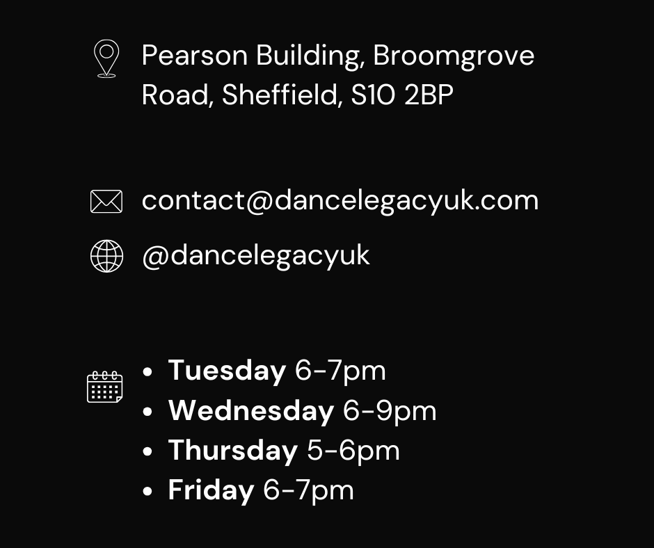 Sheffield’s hub for fun, uplifting dance classes in Commercial/Hip Hop, Contemporary, and Heels, designed for dancers of all ages and levels.